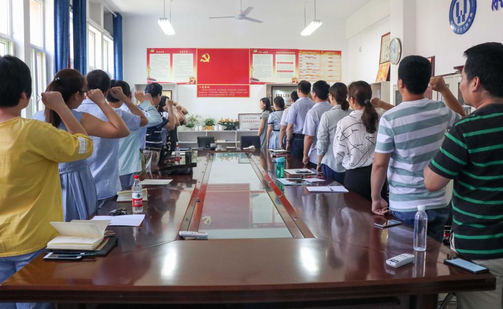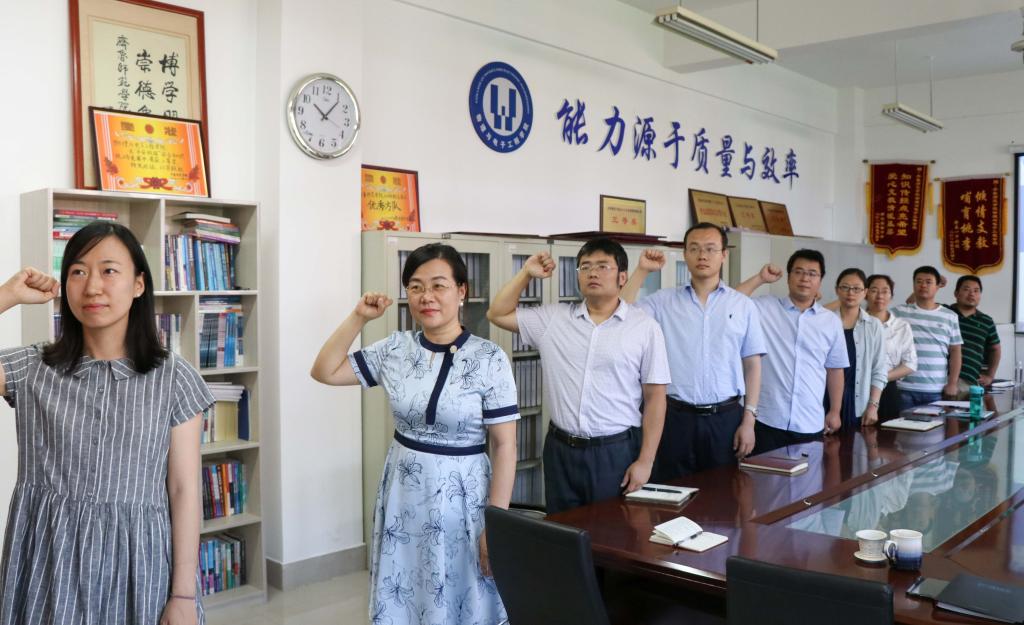 7月1日,是中国共产党成立70周年华诞,为深入开展“不忘初心、牢记使命”主题教育,使广大党员铭记“为中国人民谋幸福,为中华民族谋复兴”的“初心”和“使命”,激励广大党员“守初心、担使命、找差距、抓落实”,物电学院党总支组织全院教师党员重温入党誓词,进行了入党宣誓活动。活动由党总支书记庞守荣主持,教师党支部组织委员刘文斐领誓,全体党员进行了庄严地宣誓。
