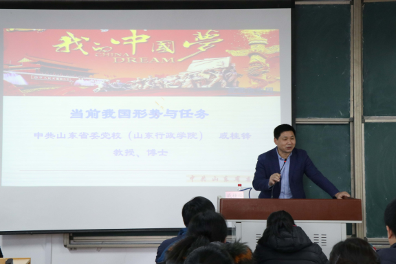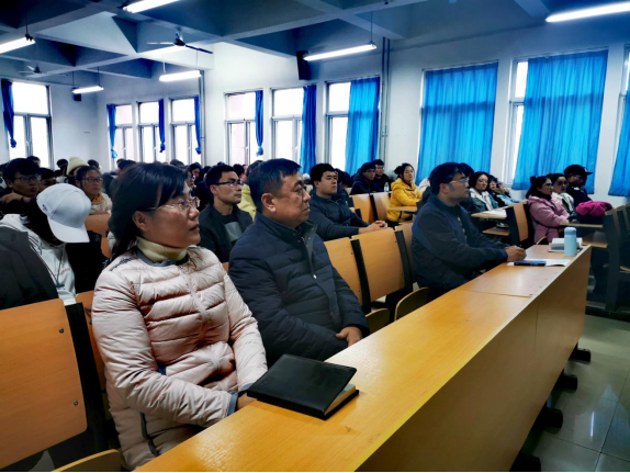戚桂锋做专题报告,学院党总支书记庞守荣、院长张洁等近