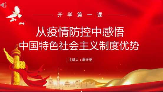 此次是开学第一课第1讲,以凸显国家制度优势,厚植学生爱国主义情怀为要义。之后,学院党总支副书记宋维国、团总支书记李华还将开展防疫知识、防控技能培训、加强心理疏导等方面的专题讲座。