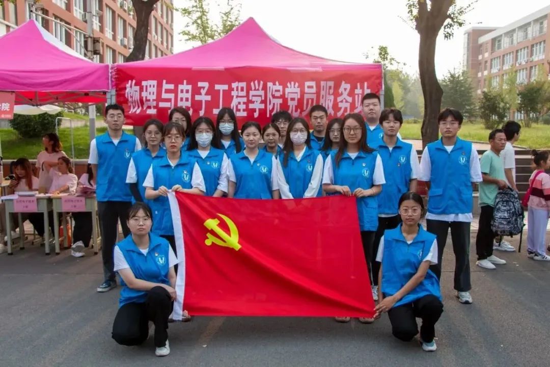 为进一步贯彻落实党的二十大精神,物理与电子工程学院积极配合学校的迎新工作,保障新生入学的顺利进行,9月9日,学院学生党支部举办“党旗引领践初心,迎新服务我先行”党员志愿服务活动,设立党员服务站,为新生安全入校保驾护航。党员们以实际行动践行初心和使命,勇担党员责任,成为迎新活动中一道亮丽的风景线。