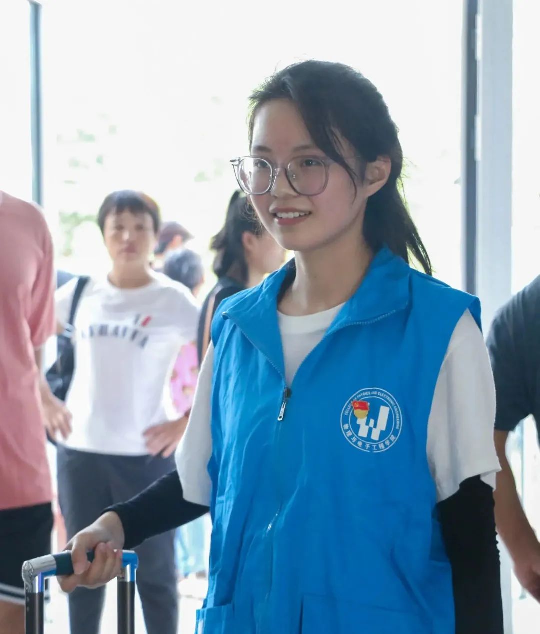 “同学,这边请,我带你去报到。”“同学,行李给我,我帮你搬到寝室。”党员志愿者忙前忙后,一句句亲切而又温馨的话语让物理与电子工程学院的迎新现场显得格外暖心和舒心,阳光照耀下胸前的党员徽章也变得更加明亮醒目。