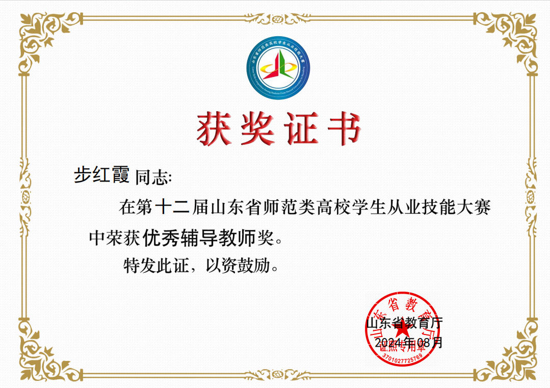 几年来,步红霞老师获得过校教学比赛一等奖,省教研项目和学会教研项目立项。多次承担研究生考研辅导,指导学生参加山东省师范类高校学生从业技能大赛、大学生物理教学技能大赛、光电竞赛等,多人获一、二、三等奖,多次获得优秀指导教师称号。
