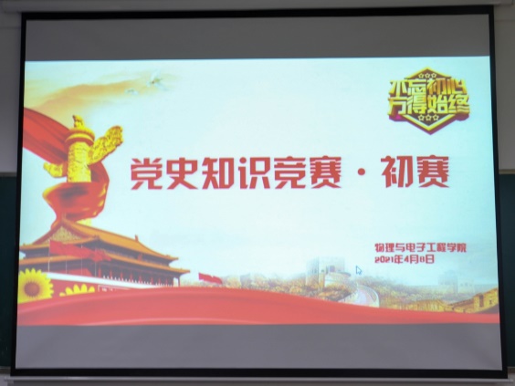 为引领同学们深入学习党史,进一步培养同学们爱党爱国意识。物理与电子工程学院于2021年4月8日晚18:30在二号实验楼601教室,开展了“党史知识竞赛”活动。活动由学生会学习部各成员担任评委,王萃林担任本次活动主持人。