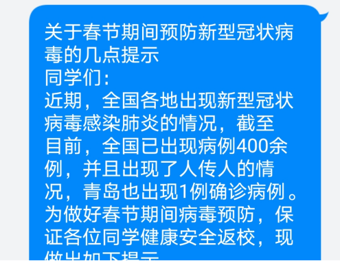 安全就是一切!在意识到“新冠病毒”危害性较大且可能会在全国大范围蔓延的第一时刻,我院领导展现出高度敏感性,于1月22日面向全体学生发出《关于春节期间预防新型冠状病毒的几点提示》,提醒学生科学防疫、理性防疫。