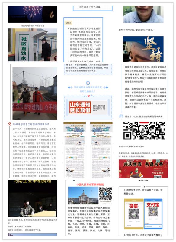 情感凝聚力量!2月3日起,为进一步提升全院师生的疫情防控能力,筑牢疫情防控堤坝,提升师生思想政治素养,加强与师生的密切联系,在党总支副书记宋维国指导下,辅导员张淑芬老师组织学生新媒体中心推出“‘疫’战到底,为爱护航”系列主题策划活动。通过该活动,我院推送致全体学生的一封信,党总支书记庞守荣带领班子成员录制视频对大家进行亲切慰问和殷切叮嘱,让广大学子感受到来自学院的关爱和惦念,并进一步明确学校防疫要求。平台还在学生中广泛征集、挖掘抗疫作品、抗疫志愿者、捐款者、学习典型、读书心得等,强化学生抗疫参与感、责任感,充实学生居家生活。