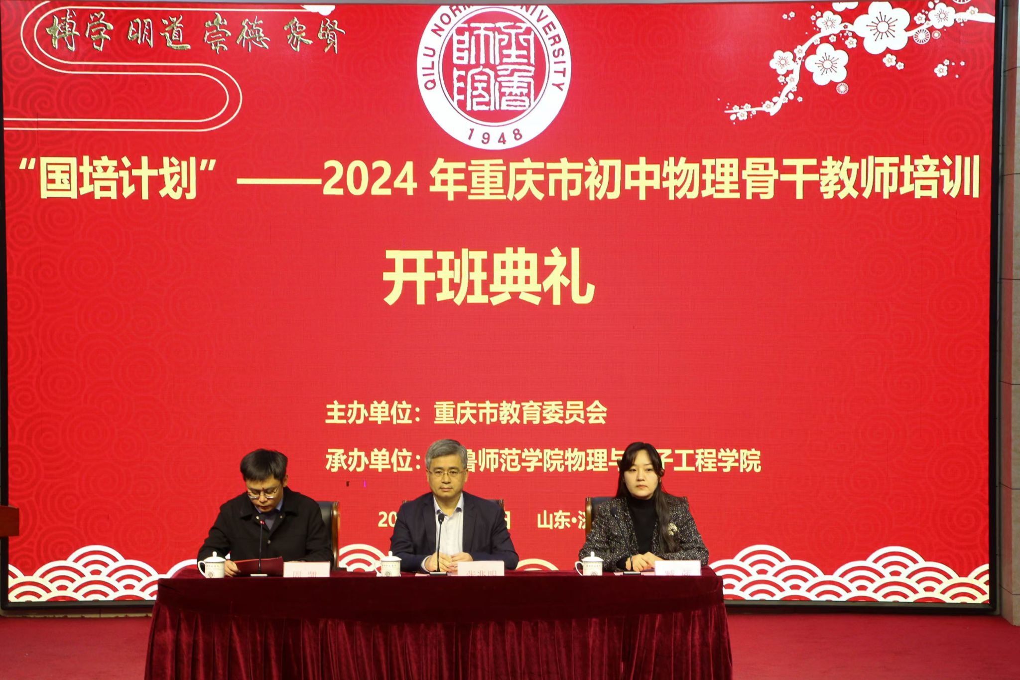 11月23日上午,由重庆市教育委员会主办,齐鲁师范学院承办的“国培计划(2024)”——重庆市市级初中物理骨干教师培训项目在齐鲁师范学院顺利开班。学校副校长张兆明出席开班典礼并致辞,物理与电子工程学院党委书记臧葳、党委副书记周凯参加开班典礼。开班仪式由周凯主持。