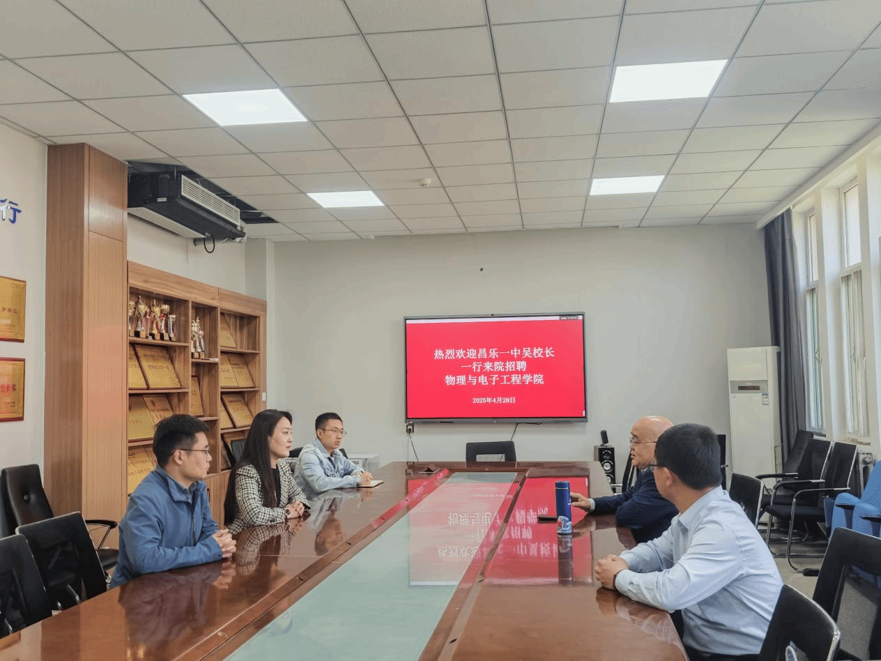 为贯彻落实省教育厅和学校访企拓岗促就业相关要求,扎实做好2025届毕业生就业工作,进一步加强校企交流合作,促进毕业生高质量就业,4月28日,物理与电子工程学院邀请昌乐一中副校长吴文福、办公室主任李应亮来校进行交流座谈,学院党委书记臧葳、党委副书记周凯、2025届毕业生辅导员吕伟皓参加座谈会。
