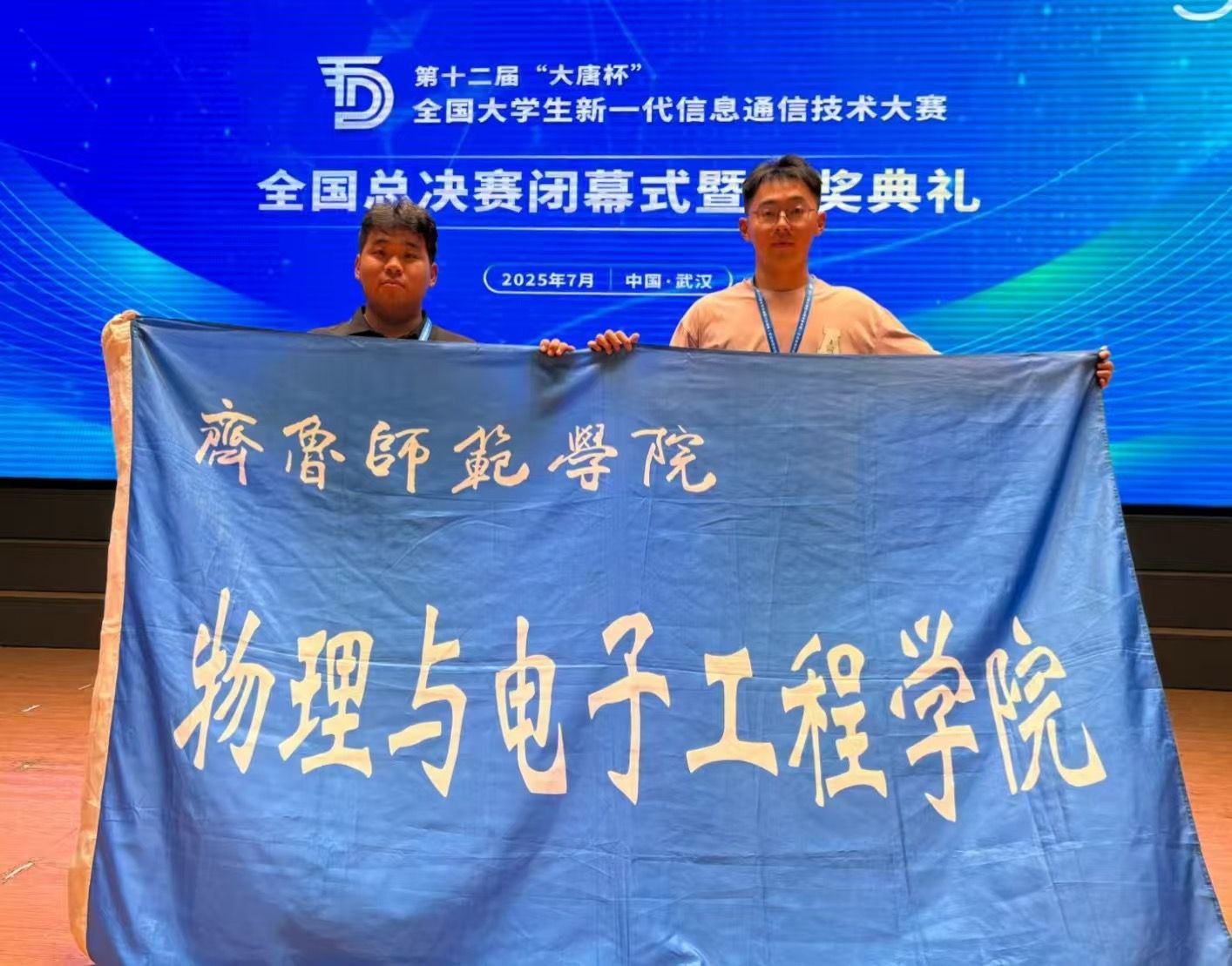近日,第十二届“大唐杯”全国大学生新一代信息通信技术大赛全国总决赛在武汉落下帷幕。物理与电子工程学院李保健、焦如晨两位同学组成的队伍,历经省赛、国赛多轮激烈角逐,凭借扎实的专业知识、出色的实践能力和优秀的团队协作精神,最终斩获全国一等奖,这是物电学子首次问鼎该项赛事全国一等奖。