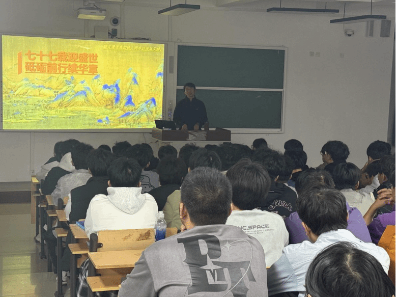 为扎实做好学生教育管理工作,落实学校领导干部联系学生班级制度,11月12日晚,物理与电子工程学院于一教A207教室举办“学校领导为新生讲党课”活动。学校党委委员、统战部部长宋新刚以“校史校情:回望来时路,奋进新征程”为主题,带领师生回溯学校奋斗历程,解码办学初心与精神内核。活动由学院党委书记臧葳主持,2025级学生代表参加。