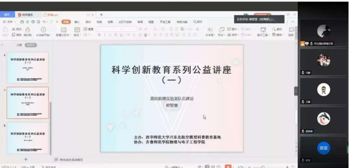 讲座首先由西华师范大学川东北科普教育地的熊智慧教授等做了航模科学创新的科普讲座,然后由西华师范大学的曾体贤教授介绍了航模前沿的科学知识,他认为,航模活动是一项集科学性、趣味性和体能性于一体的特色科技互动,希望每个社团成员都能够加入其中,让科技之花绽放在校园里的每一个交流。讲座过程中展示西华师范大学的航模实验室与部分作品,并与学院航模协会的成员进行了互动。