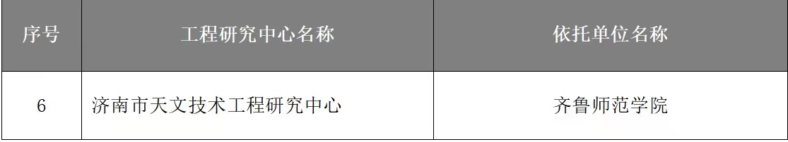 近日,济南市发展和改革委员会公布了2023年济南市工程研究中心拟认定名单,齐鲁师范学院天文技术工程研究中心获批济南市工程研究中心,这是学校自2021年以来再次获批济南市该类科研创新平台。