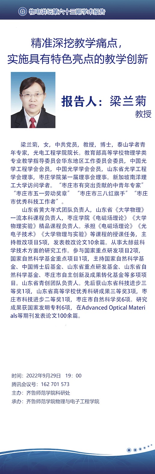 地址:济南市章丘区文博路2号 邮编:250200 电话:0531-66778082 Email:qlnuwdxy@163.com Copyright ? 2016 齐鲁师范学院'物理与电子工程学院 版权所有 All Rights Reserved