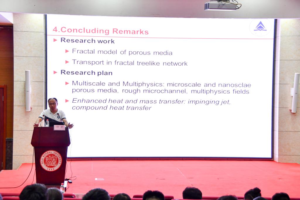 6月28日下午,中国计量大学理学院徐鹏教授在学校图书馆学术报告厅,为我院师生作了关于“分形几何及其在传热传质中的应用研究”的学术报告。物理与电子工程学院院长张洁教授主持了报告会,副院长姬长建以及部分师生参加了报告会。