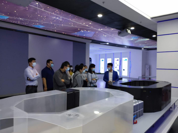 首先,由超算中心的王吉森老师向大家介绍了超算中心的发展历程。超算中心,建有中国首台全部采用国产CPU和系统软件构建的千万亿次计算机系统。老师们兴致勃勃地听取了专家对超算中心的应用领域以及重要项目的介绍,并专注观看了相关宣传影片。参观现场,教师们或驻足观看,或静静思索,或互动交流,近距离的与中国科技创新技术接触,深刻理解了超级计算对于科技发展的重要性。
