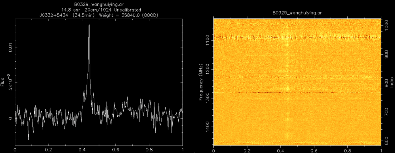 脉冲星Pulsar B0329+54是一颗孤立的脉冲星,其前身是一颗比太阳还要庞大的巨大恒星。在恒星生命周期的末期,由于无法继续聚变比铁更重的物质,这颗恒星发生了超新星爆炸,最终形成了脉冲星。这颗脉冲星周期为0.7145秒,年龄约为500万年,距离太阳系约3500光年,是北天已知最亮的射电脉冲星之一。对这颗脉冲星射电波段观测的结果,将对脉冲星物理等领域的研究产生深远影响。