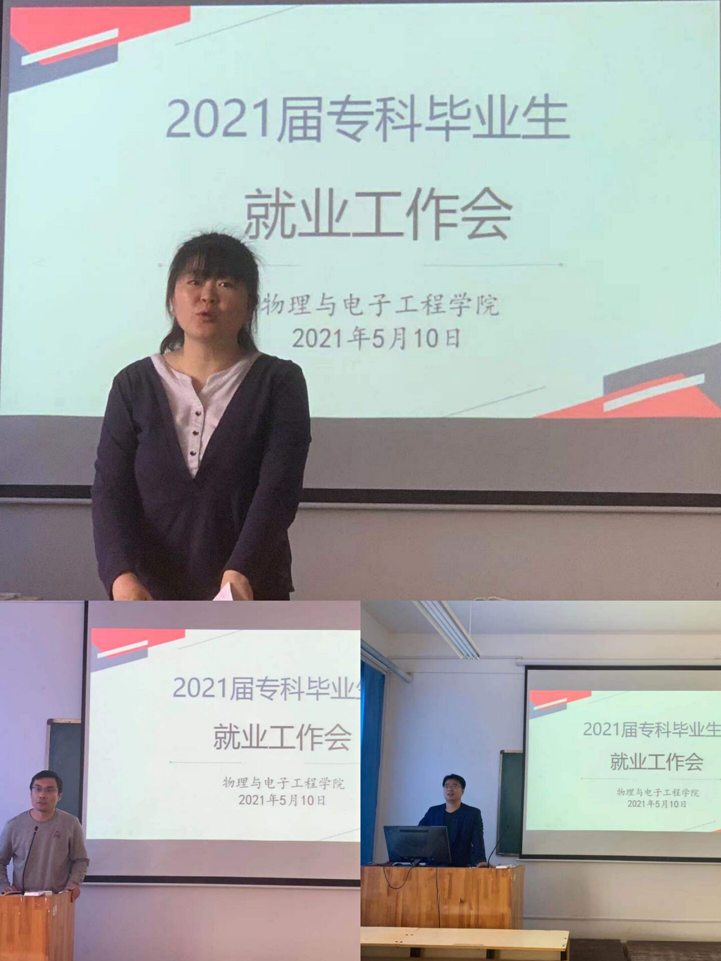 5月10日,物理与电子工程学院在二号实验楼601召开 2021届专科毕业生就业工作会,会议由辅导员张凤云主持,院长助理刘萌、团总支书记李华、辅导员吕伟皓、21届全体专科毕业生参加会议。