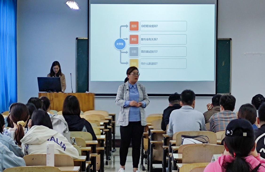在本次专场招聘会中,两家企业向同学们介绍了企业职级晋升通道、完善的培训体系和相关专业的“人才培养计划”。同时,两家企业也希望借助本次专场招聘,实现企业和学院的信息共享、人才对接,有效地推动产教融合。随后,同学们踊跃提问,企业负责人也作出相应解答,增进了同学们对相关岗位的了解。最后,李华对同学们提出了殷切期望,希望2017级毕业生能认清就业形势,及时把握机会,找到自己心仪的职位。