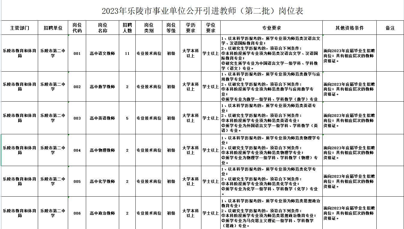 附件:2023年乐陵市事业单位公开引进教师(第二批)岗位计划表