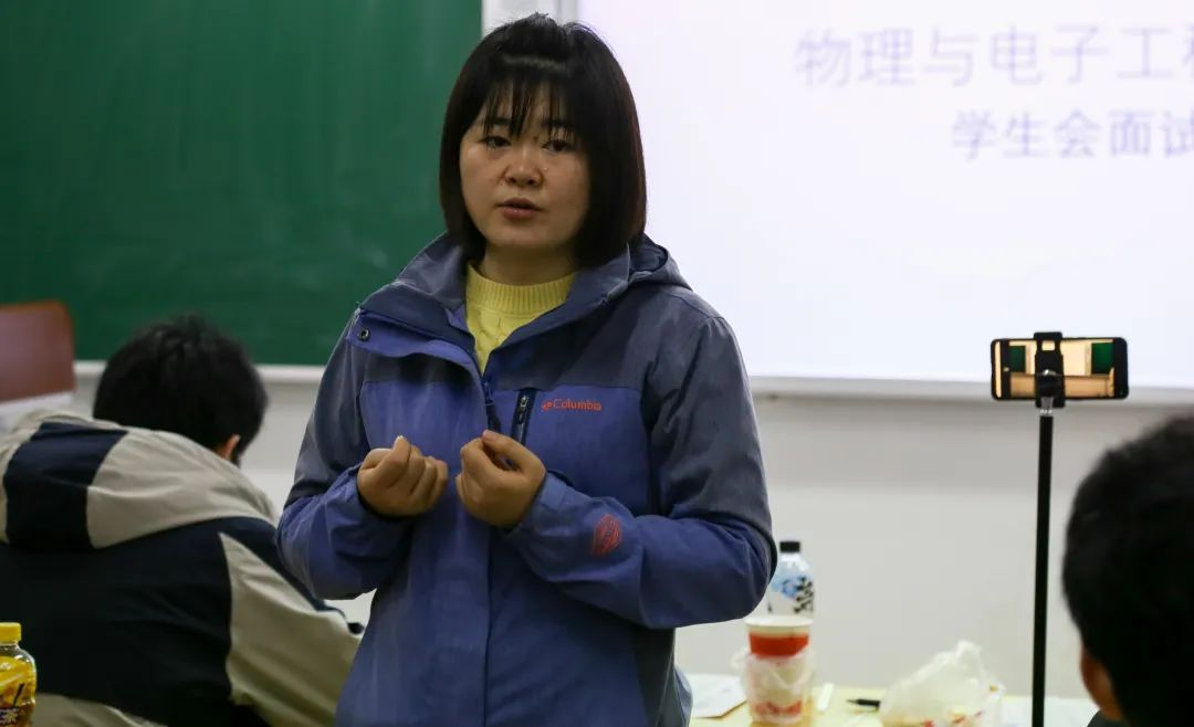 为了能更有效地开展学生会工作,实现学生会干部的新老交替,培养和壮大学生会干部队伍,保证学生会工作的连续性,充分发挥学生的主体作用,服务学校、服务同学,物理与电子工程学院学生会顺利开展第十八届纳新活动。到场参与面试的有团总支副书记、2022级辅导员张凤云、2019级辅导员吕伟皓、2020级辅导员杨沼佩、2021级辅导员张萌、学生会各部门分管主席及代表。在正式纳新之前张凤云老师发表讲话,希望在座的学生会成员们严肃认真对待本次的学生会纳新工作,仔细倾听在座新生的发言,积极向他们提问和指出问题,促进学弟学妹们成长进步,为学生会选出更优秀的成员。