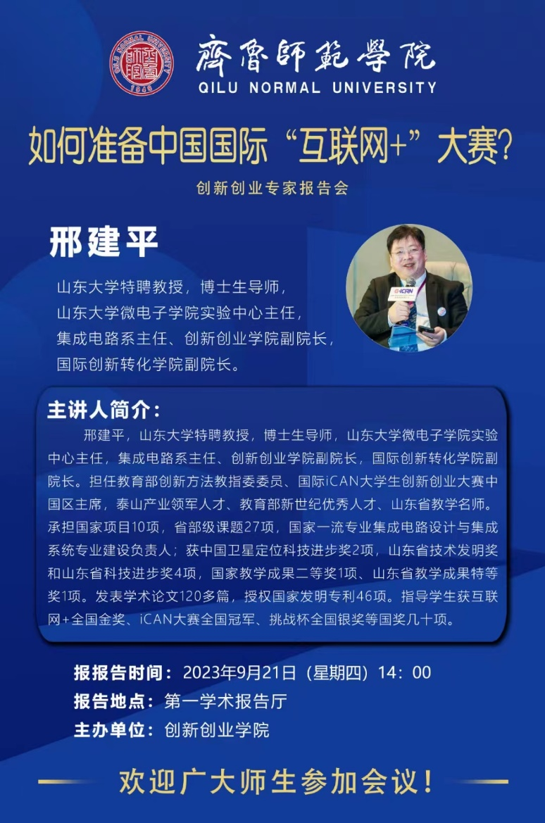 为进一步弘扬创新、创业、创造精神,开拓学生专业视野、激发创意想法、拓展创新思路,9月21日,在齐鲁师范学院第一学术报告厅开展创新创业专家报告会,创新创业学院副院长邢建平教授主持讲授,本次报告会通过线上线下相结合方式共同开展,吸引了大批热衷于创新创业的青年学子们。启明科创社积极组织社员参与,获得了宝贵的经验分享。