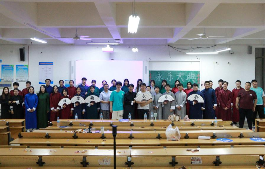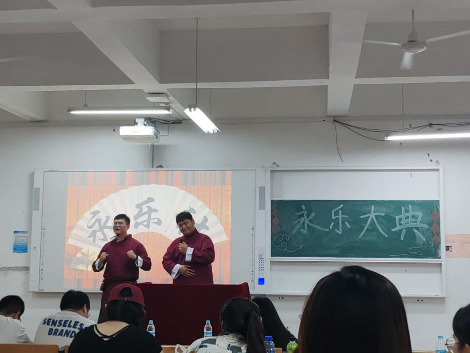 为了传承、发扬传统文化艺术的精髓,增强同学们的文化自信心和民族自豪感,推动校园文化丰富、建设与繁荣发展。2024 年 5 月 18 日晚 6:30,永乐社于一号教学楼 A207 举行永乐大典活动,此次活动由宣传部部长李子辰和王李浩共同主持,吸引了 200 余名观众到场。