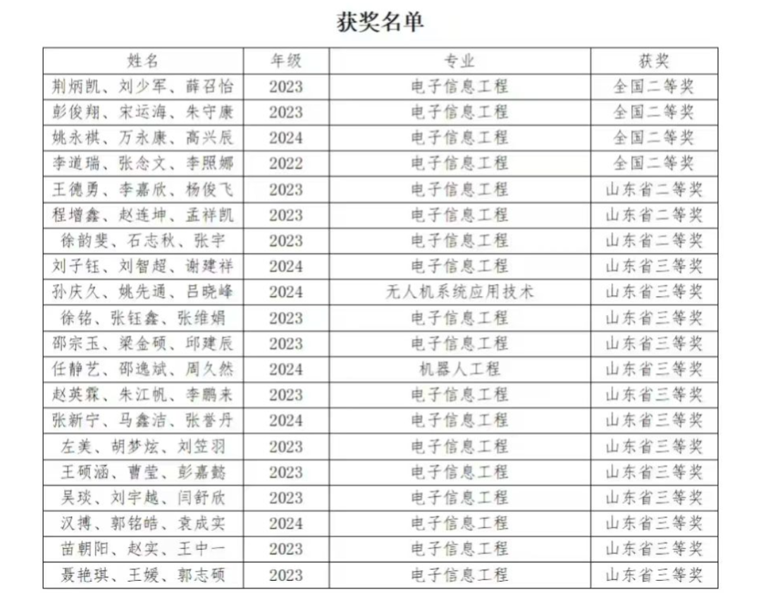 此次竞赛成绩的取得,是齐鲁师范学院长期以来坚持“以赛促学、以赛促教、以赛促创”育人理念的生动体现,充分展示了齐鲁师范学院学子优秀的专业素养、创新精神和团队合作能力,也反映了齐鲁师范学院在电子信息类专业人才培养和教育教学改革方面的扎实成效。齐鲁师范学院将继续积极组织和支持学生参与高水平学科竞赛,不断激发学生的创新潜能,助力学生在更广阔的平台上锻炼成长、再创辉煌。