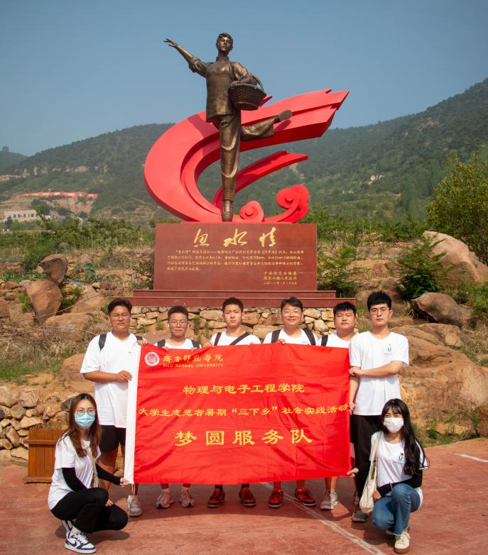2022年6月21日,齐鲁师范学院物理与电子工程学院党委副书记臧葳,团总支书记、学生第一党支部书记李华,团总支副书记、学生第二党支部书记张凤云,辅导员吕伟皓、杨沼佩、张萌带领“梦圆”服务队8名大学生参观桃棵子红色根据地。