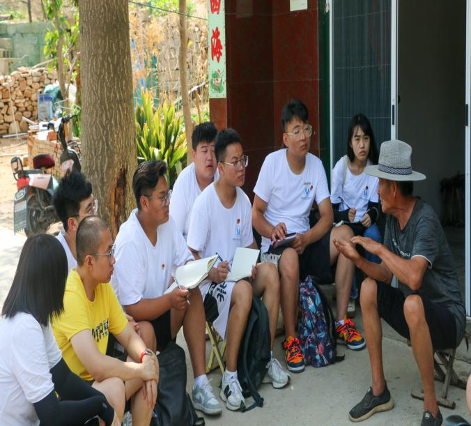 中午过后,服务队的同学们在老师的带领下一同拜访了西墙峪村的张大爷。张大爷是一名年逾七旬的老党员,他向队员们其讲述了当年这座村子的变迁,回味了西墙峪当年抗日时期的点点滴滴,讲述了中华人民共和国成立后乡村的伟大复兴进程。