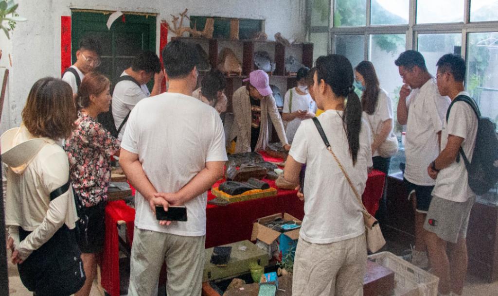 首先,“梦圆”服务队来到艺朽阁参观草编工艺。草编,民间广泛流行的一种手工艺品。是利用各地所产的草,就地取材,编成各种生活用品。然后服务队继续参观传承千年的沂蒙古韵——沂水砚。沂水如今的砚台雕刻手法刀法精巧。图像秀丽,独树一帜。经过数百年传承提炼的沂水砚台制作技艺,体现鲜明的沂蒙地域艺术特色,展现着石材的自然之美、匠人的记忆之美和沂蒙的文化之美。