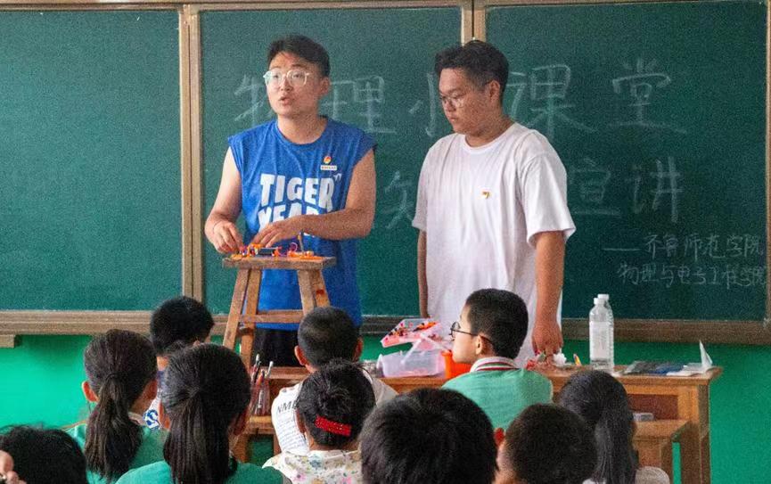 6月22日,“梦圆”服务队8名大学生前往院东头镇小学开展“趣味课堂让爱发光,情暖乡村筑梦起航”的趣味教学活动。利用自身所学专业知识,为乡村教育出一份力。