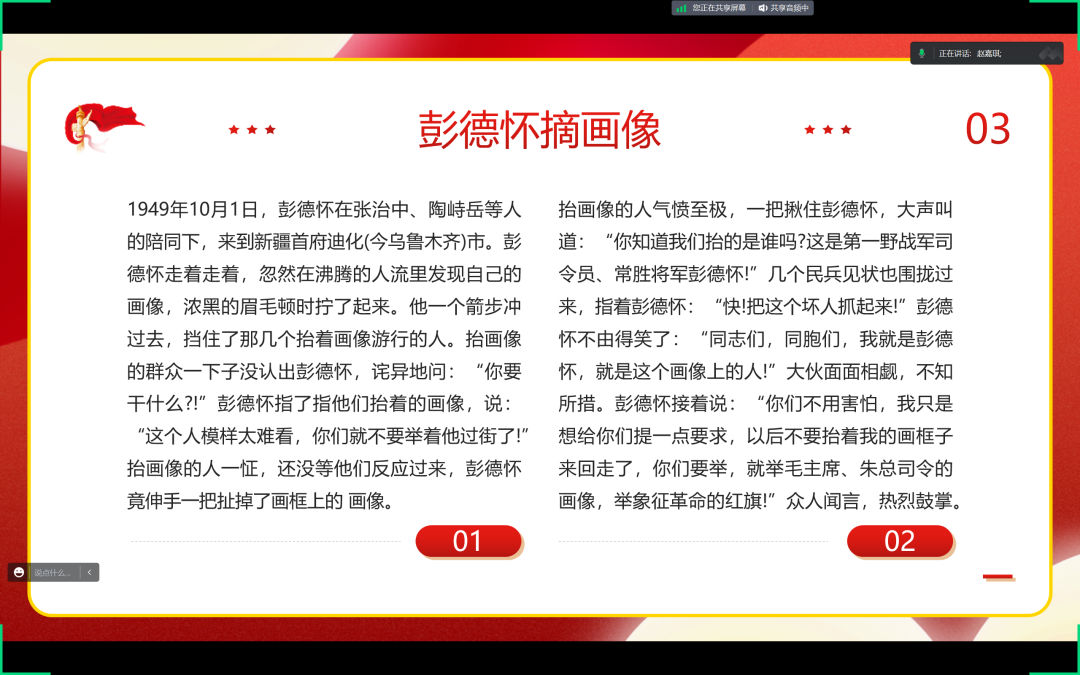为学习贯彻党的二十大精神,深入贯彻落实习近平总书记关于“三农”工作的重要论述,齐鲁师范学院物理与电子工程学院“深耕红色精神传播团”的队员们在各社区参观与学习了各地的红色党史精神,并由队长组织腾讯会议一起学习了20篇党史小故事。