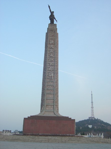 8月1日至9日,在队长曹发奇同学的带领下,队员们详尽地参观了铁道游击队纪念馆。纪念馆占地面积9公顷,由一碑,即铁道游击队纪念碑;一廊,即铁道游击队将军碑廊;一馆,即铁道游击队纪念馆;一城,即铁道游击队影视城;一墓,即铁道游击队“三雄墓”;一园,即枣庄人民英雄纪念园;一亭,即清风亭,一阁,即临山阁;一广场,即铁道游击队纪念广场九部分组成。它以“铁道游击队纪念碑”为主体建筑,广场、甬道、碑廊、清风台、金山墓、八大亭等景观散布其中,错落有致。