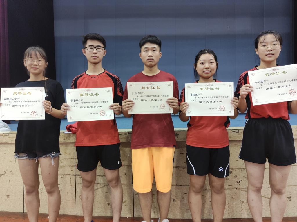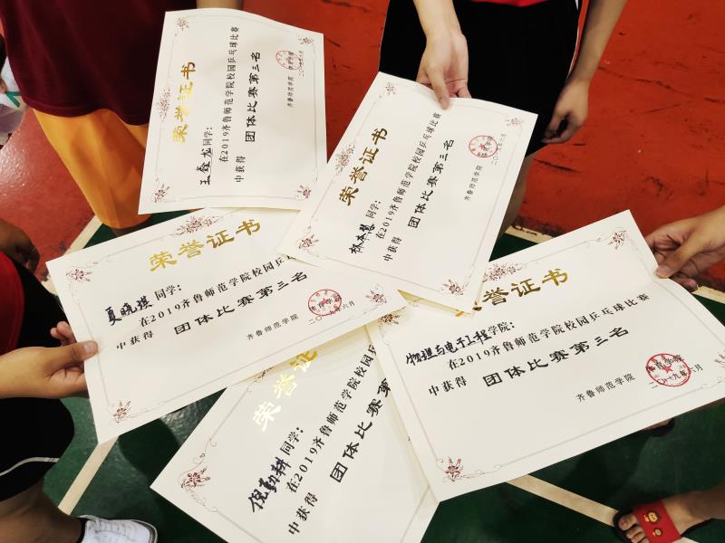6月20日,2019齐鲁师范学院校园乒乓球比赛在校体育馆举行。我院乒乓球队勇夺团体比赛第三名的好成绩。