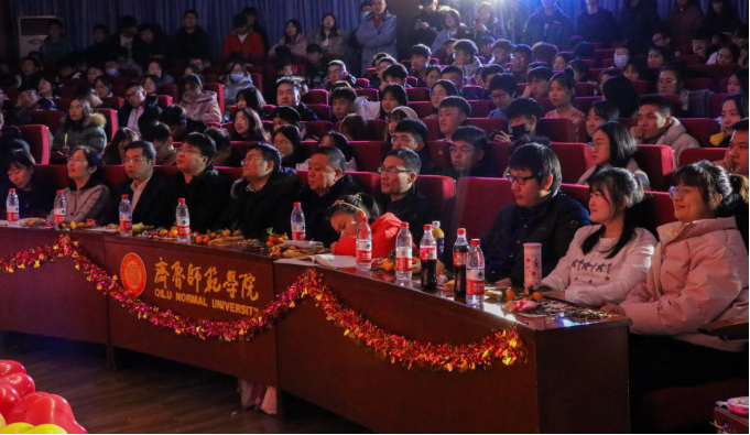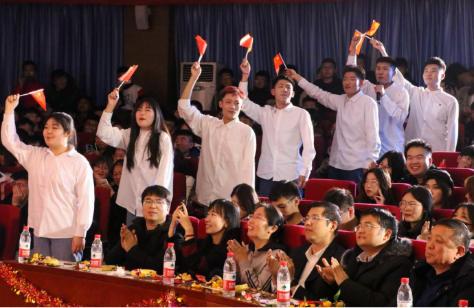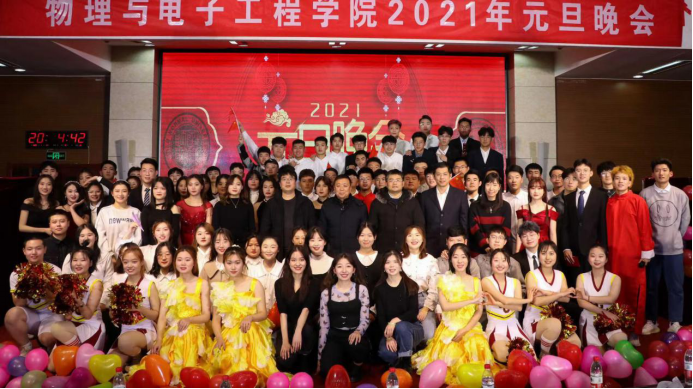 踊跃争先,喜迎新年!12月14日晚,在我校章丘校区学术报告厅内欢歌笑语、热闹非凡,物理与电子工程学院2021年元旦晚会暨学风建设表彰大会隆重召开。学院党总支书记庞守荣、副院长姬长建、院长助理刘萌、团总支书记李华、办公室主任宋文哲等400余名师生共同观看晚会。十六个精彩节目别具匠心且环环相扣,一次又一次渲染了全场气氛。