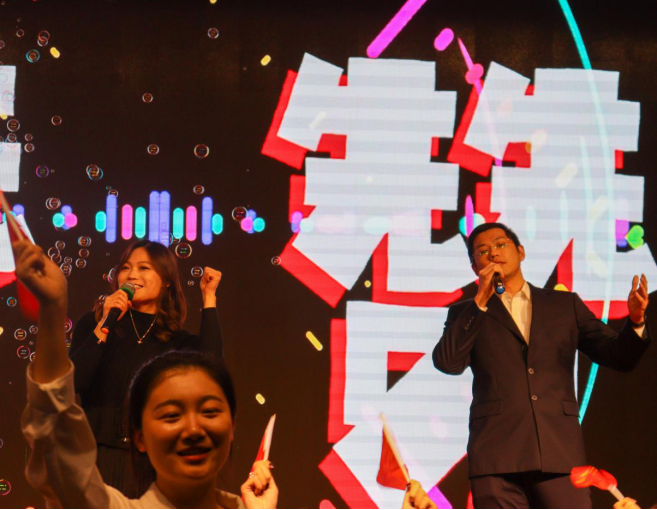 晚会下半场异彩纷呈。《物电学院的秘密style》魅力十足、小品《贼不容易》风趣幽默、古典舞《多情种》婉约凄美、情景剧《云烟成雨》令人动容、《韩舞串烧》热辣炫酷、相声《我是歌手》令人捧腹大笑、歌曲《我乘着风飞过来》青春飞扬,还有动感十足的《啦啦操》表演为全场观众献上了一场视听盛宴,让人大饱眼福。最后,由在场全体师生压轴倾情演唱的结尾曲《赞赞新时代》再次点明晚会主题,激励同学们在新的一年更加努力,用自己的青春向祖国告白,为实现中华民族伟大复兴的中国梦而不懈奋斗。