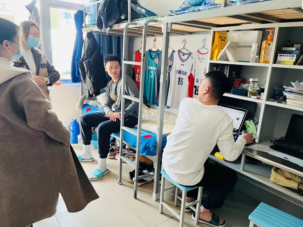 检查期间,学院辅导员根据年级分布分别进入相应宿舍楼进行走访检查。提醒同学们在当前疫情防控常态化的形势下,坚持做好每日消毒通风,注意个人防护,坚持“非必要不外出”的前提下,积极配合学校开展疫情防控工作。此外,老师们询问了同学们的寒假生活状态,并提醒同学们及时收心,尽快调整作息时间适应新学期的学习和生活节奏,增强安全防范意识,自觉做好防盗防骗工作。