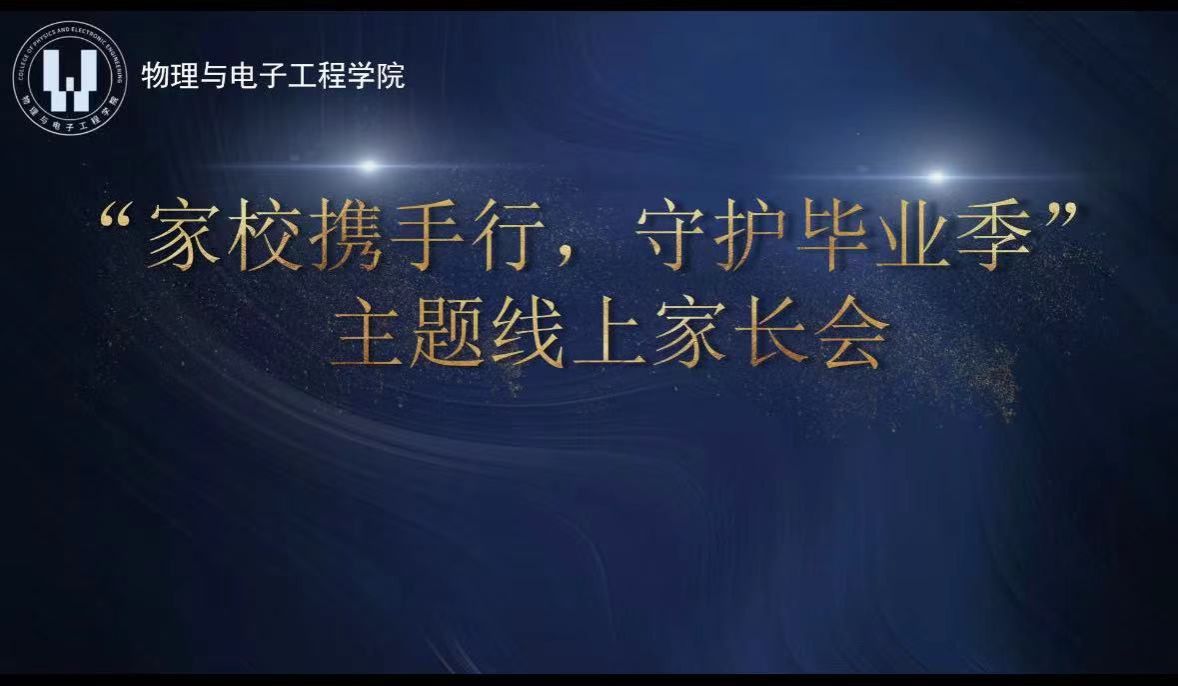 为进一步加强家校合作,守护毕业生毕业季安全,帮助毕业生家长了解今年的就业形势,发挥家校协同育人效能,促进学院2024届毕业生实现安全快乐度暑假、高质量充分促就业,物理与电子工程学院于6月19日晚7点召开“家校携手行,守护毕业季”主题线上家长会。学院党委书记臧葳、党委副书记周凯、辅导员吕伟皓、2024届毕业生家长参会,会议由团总支副书记杨沼佩主持。