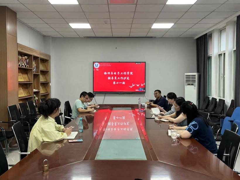 为切实加强辅导员队伍建设,提升辅导员专业素质,积极探索辅导员赋能发展新模式,9月13日,物理与电子工程学院举办第十一期辅导员沙龙,邀请教师教育学院辅导员袭著高围绕“学科竞赛中辅导员的优势及作用”做交流汇报。学院党委书记臧葳、团总支书记张凤云、全体辅导员参加活动。