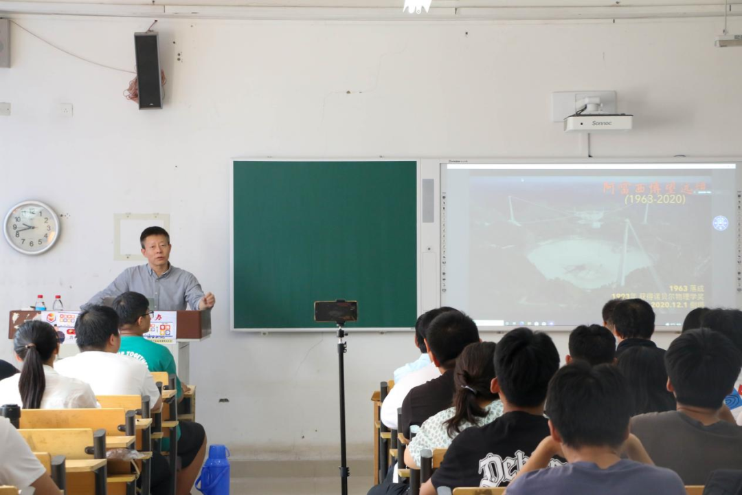 为提高同学们对天文知识的理解,培养我院学生的探索兴趣,同时为天眼计划筹备人才力量,近日,我院邀请天文学专业特聘教授、FAST首席科学家——李菂老师,于一号教学楼A209为同学们开展了“天眼的发现空间”主题讲座。