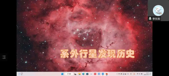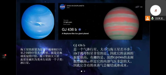 活动开始前,奎虚天文社做了充分准备。社内成员积极整理资料,并进行试演讲解,着力为大家展现一场优质的线上科普活动。12月4日下午17:00,活动正式开始。首先,由研学部部长王慧莹介绍此次活动概况。然后由研学部李东阳、王慧莹进行正式科普讲解。介绍了关于太阳系外行星的基本概念,阐述了从古至今关于系外行星的猜想与最终落实到的科学研究上的一些伟大成就和相关研究的意义。接着,他们又介绍了系外形星从萌芽到成为科研重点对象的悠久历史与天体系外行星的探测方法,并讲述系外行星的分类等相关知识。本次讲解通过PPT结合视频科普等形式展示,用通俗易懂的方式向大家介绍系外行星,起到了很好的科普效果。同时,在讲解中也阐释了中国在系外行星方向的观测、计划和任务,表达了同学们对中国天文探索科研事业的美好祝愿和憧憬。