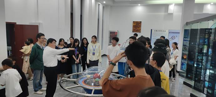 由学院天文学专业12名同学组成的“科普之翼”实践队前往云南大学云台山天文台,参观学习天文科技前沿设备,聆听行业专家讲解天文台的各类设备在通讯、气象、航天等方面发挥的重要作用。为深入了解各类观测数据和理论模型,学生们陆续参观了云南大学光学、电磁学等各类实验室,利用先进仪器进行实地操作,并与实验室老师们在技术方面进行深入交流。通过此次活动,学生们将课堂所学与亲身感受相结合,深深理解了国家重大战略和专业科技发展给技术进步、生产力提升带来的帮助,从心中坚定了要努力学习、勤于钻研,为中国式现代化建设、服务高质量发展的强烈愿望和坚定信心。