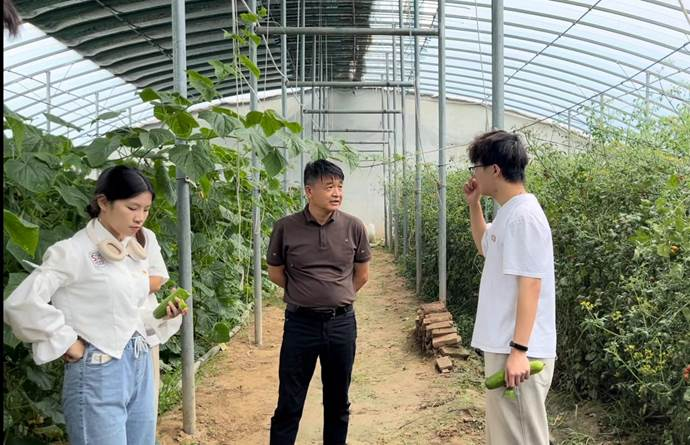 学院“田园甄品青推官”社会实践服务队前往山东省德州市临邑县,走进田间地头,了解特色乡村建设,深入乡镇企业,调查研究以践促学,探索“助农路”。队员们在种植大棚的田间地头感受农作物的生长环境,在报春晖食品公司的车间内参观产品的包装、仓储等生产过程,车间相关人员为服务队成员仔细讲解了电商带货的全过程,详细介绍了AR虚拟主播带货等直播手段。成员们运用所学知识,共同参与从产品摄影文案撰写,再到价格和运费策略,协助策划全方位的电商营运方案,拓展线上销售市场,有效提升产品曝光度,同时为实践服务队拓展了创新创业助农发展的新思路。
