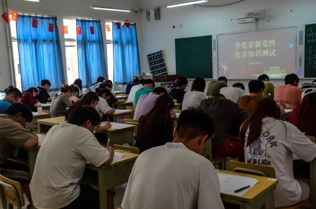 为扎实开展学习贯彻习近平新时代中国特色社会主义思想主题教育,全面落实“学思想、强党性、重实践、建新功”的总要求,加强学生会队伍的思想建设和组织建设,进一步提高我院学生干部的综合素质,6月20日中午,物理与电子工程学院于一号教学楼A211开展学党章强党性党章知识测试,学院团总支书记梅茹、团总支副书记杨沼佩、2019级辅导员吕伟皓、2021级辅导员张萌监考,学院十九届学生会主要学生干部参与测试。