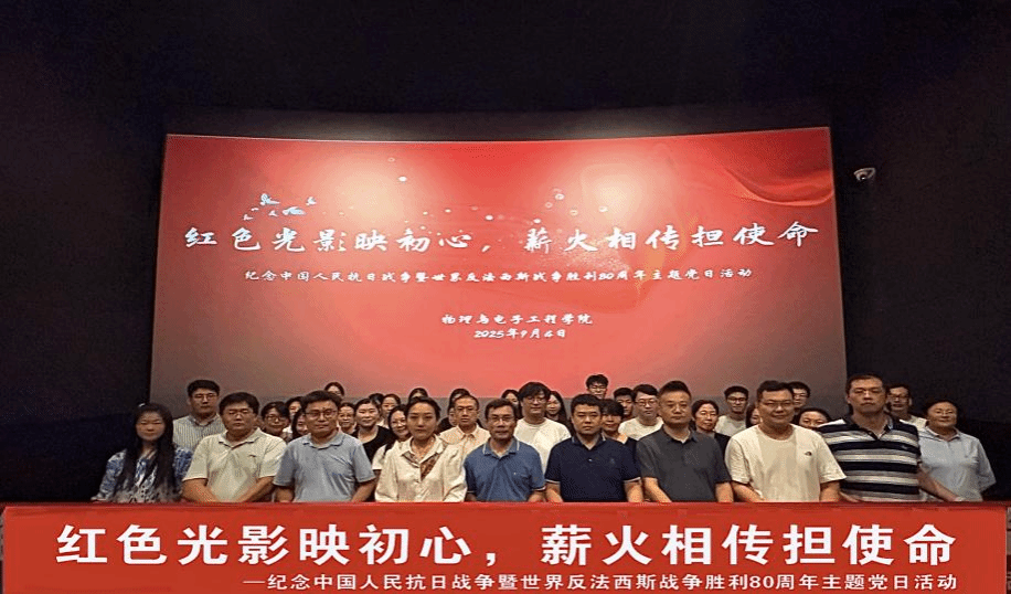 为纪念中国人民抗日战争暨世界反法西斯战争胜利80周年,弘扬伟大抗战精神,增强党员的历史责任感和使命感,9月4日,物理与电子工程学院开展“红色光影映初心,薪火相传担使命”主题党日活动集中观看历史题材电影《南京照相馆》。物理与电子工程学院党委书记臧葳,学院党员教师代表及学生党员代表参加。