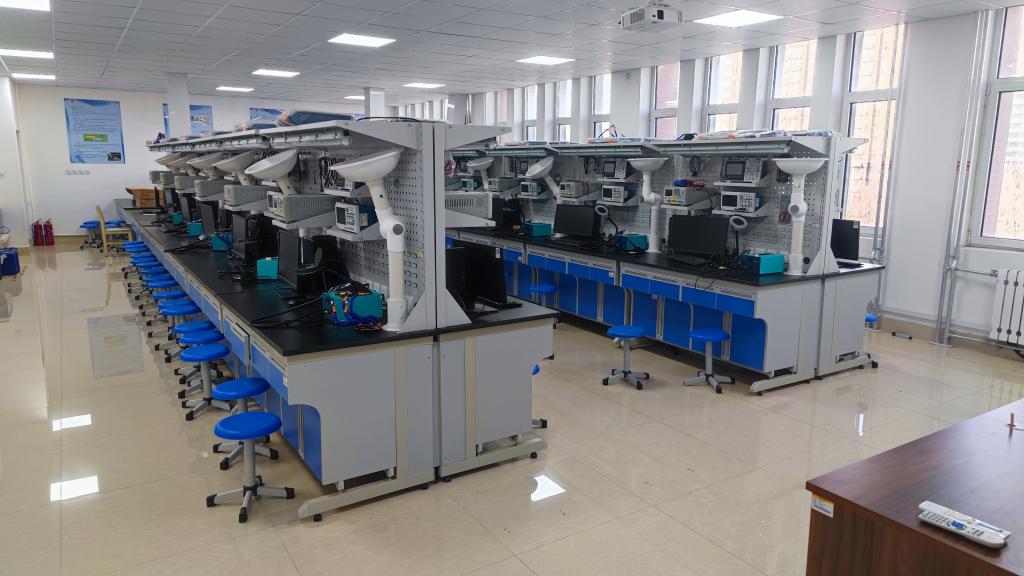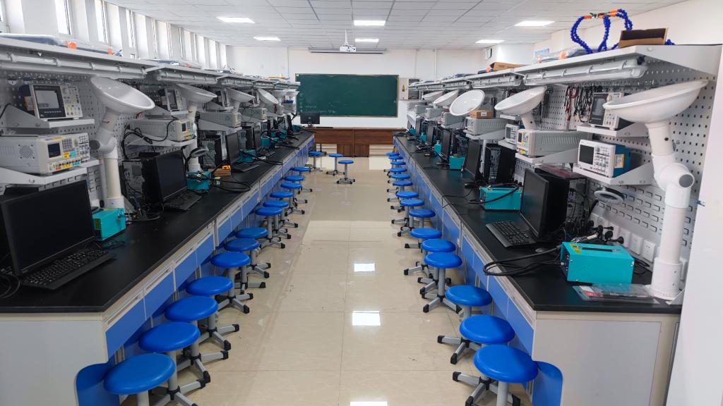电子工艺实训隶属于电子信息实验教学中心,主要承担电子综合设计、工程实训等训练项目及学科竞赛的训练与竞赛场地。通过实践教学激发学生学习兴趣,为学生提供自由开放的学习环境,进而提高学生的工程实践、技术应用、设计开发和创新能力。实验室使用面积约135平方米,实验设备24套,每套设备包含ODP3033型稳压电源、TBS1202C型数字示波器、NDG2035-T型函数信号发生器BK701D型多功能焊台等。此外,实验室还有完整的PCB电路制作设备,包括ProToMat S64型自动刻板机、MiniLPS型过孔导通设备、EasyQuick SM型阻焊字符设备、手动贴片机、AM-SMD-20型回流焊机。实验室可用于学生集中实践环节,承担多门实训课程内容,空余时间作为开放实验室提供给学生开展科技创新活动。