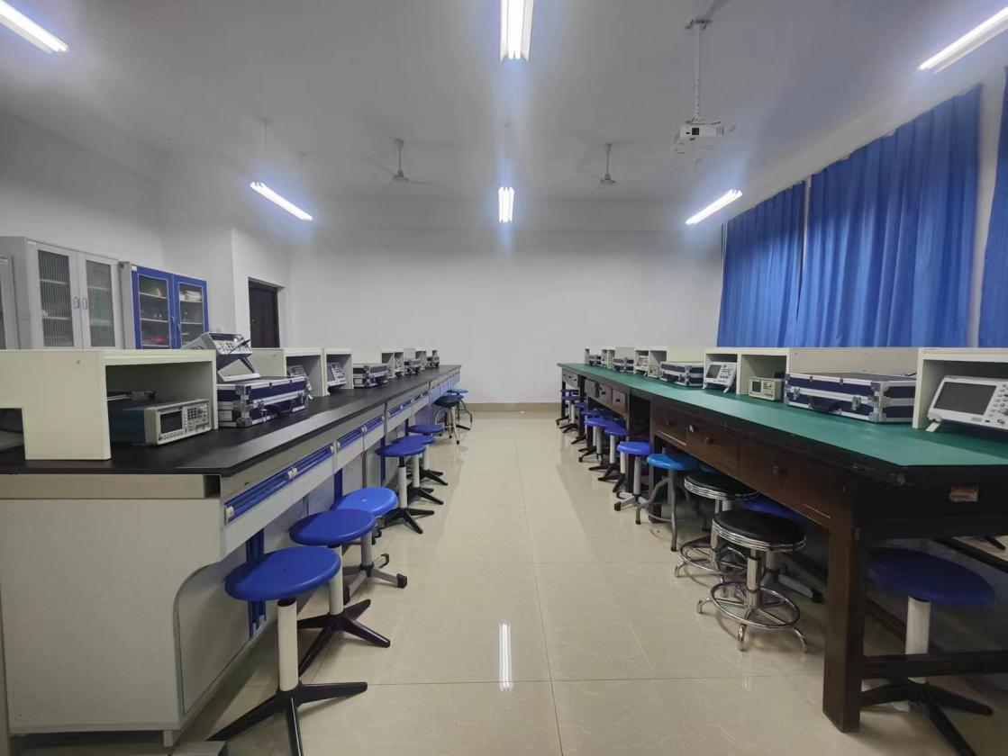 高频电子线路实验室隶属于电子信息实验教学中心,主要承担高频电子线路课程实验,实验室使用面积约65平方米,实验设备48台(套),主要设备有LTE-GP-03A高频电子线路综合实验箱、TBS-1202C型双通道数字存储示波器、AFG1022型任意函数发生器等。
